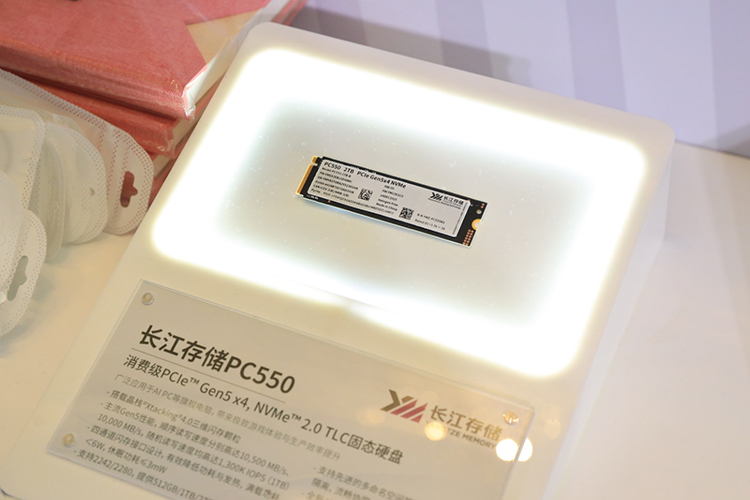 在消费级SSD领域,长江存储展示了采用PCIe 5.0×4 TLC的PC550和采用PCIe 4.0×4 QLC的PC42Q,两款产品兼顾性能与性价比,覆盖不同用户需求。